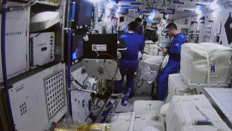 天舟五號與中國太空站對接後,神舟十四號任務太空人陳冬、劉洋和蔡旭哲已打開其艙門和完成環境檢測,並入艙開始「拆快遞」。