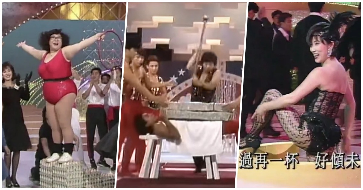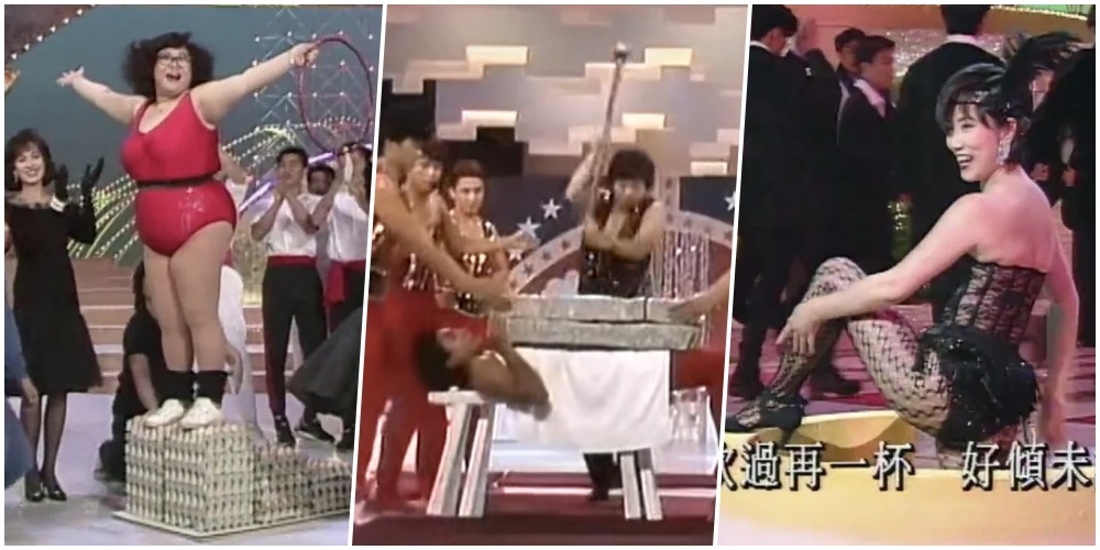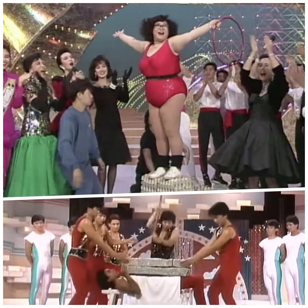 80年代的TVB台慶,藝員經常作出高難度的雜技表演,甚至稱得上亡命演出,都使觀眾心跳加速,緊張又擔心。