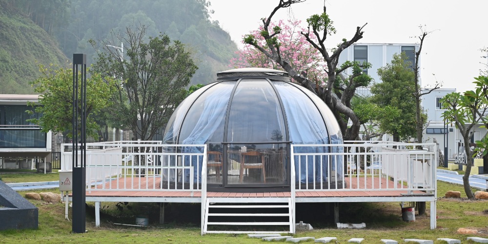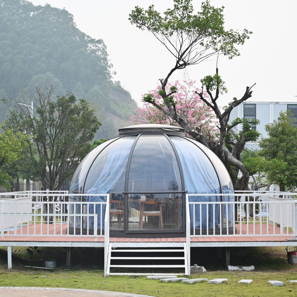 貨櫃箱外,江門亦特別設計了20套精美的可移動房間,取名為「星空房」。「星空房」外形為半球體設計,四周全都以玻璃建造,可用作卧室,或作為餐廳或會議之用。玻璃內四周有窗帘,天花玻璃窗可升可降,令空氣加快流通,有迅速降溫之效。