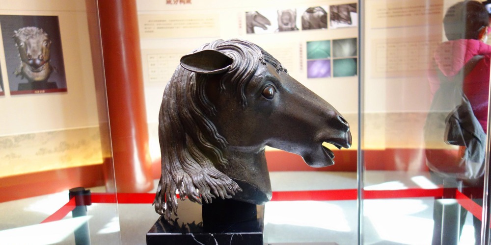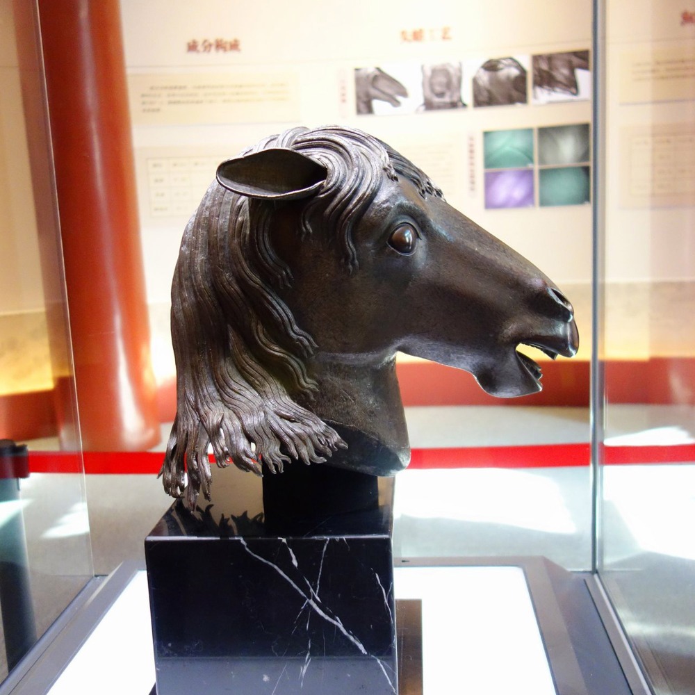馬首銅像為意大利人郎世寧設計,它融合東西方藝術意念和表現風格。於清乾隆時由宮廷巨匠精工細作,以精煉紅銅為材,色彩深沉厚重,神態自若,栩栩如生,毛髮畢現,經歷百年,不鏽不蝕,展現高超工藝,可說是一件非凡藝術品。