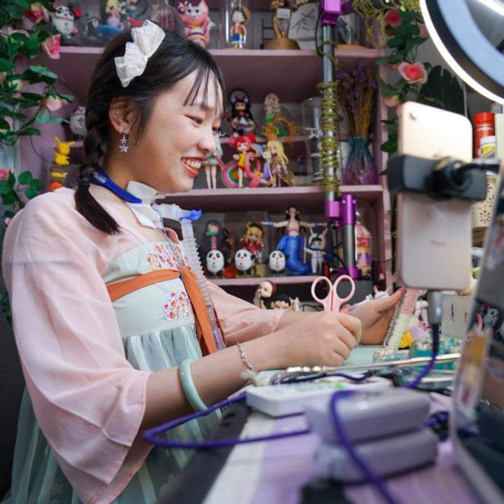 Bilibili上自稱「一枚下凡歷劫的小仙女」的向晨曦,是一名黏土手作主播。與一般主播不同的是,每次直播,她幾乎只有臉和手在動,喉嚨上還插着呼吸管。因她患有罕見疾病,全身80%處於癱瘓,但她卻完成了一個幾乎不可能的任務。
