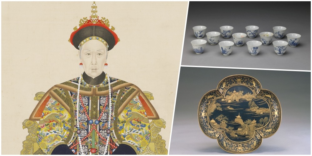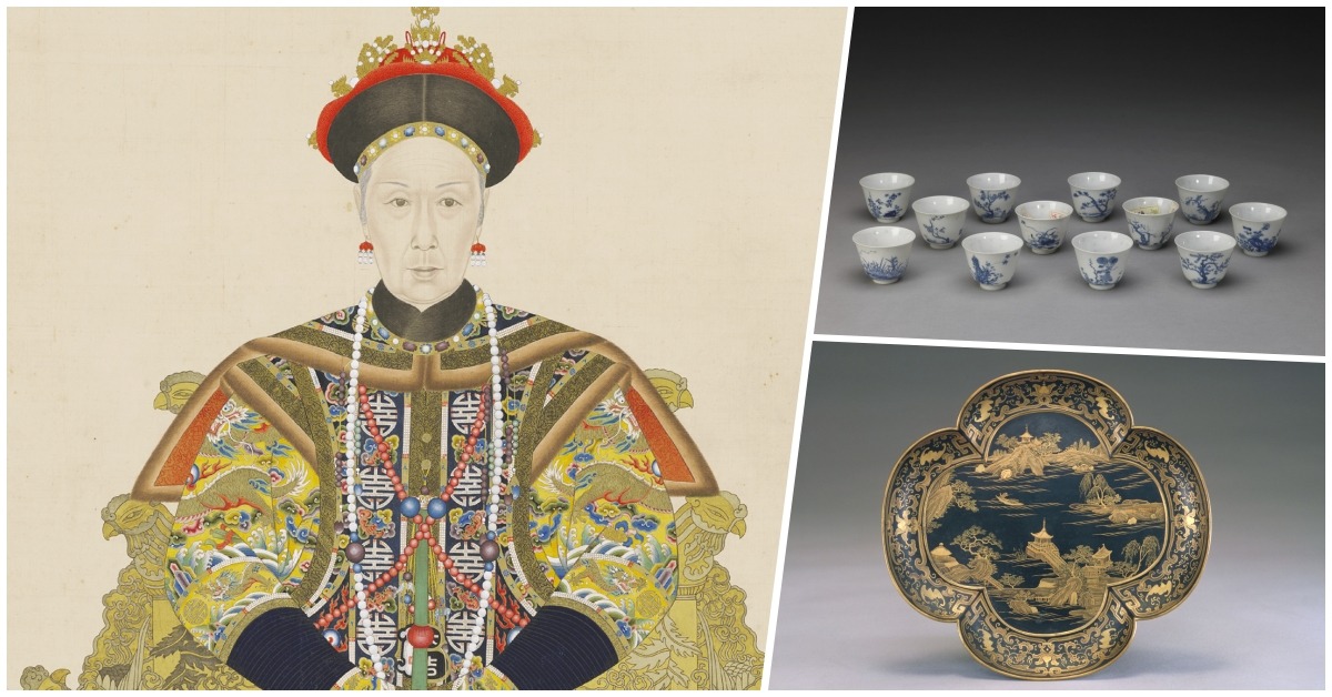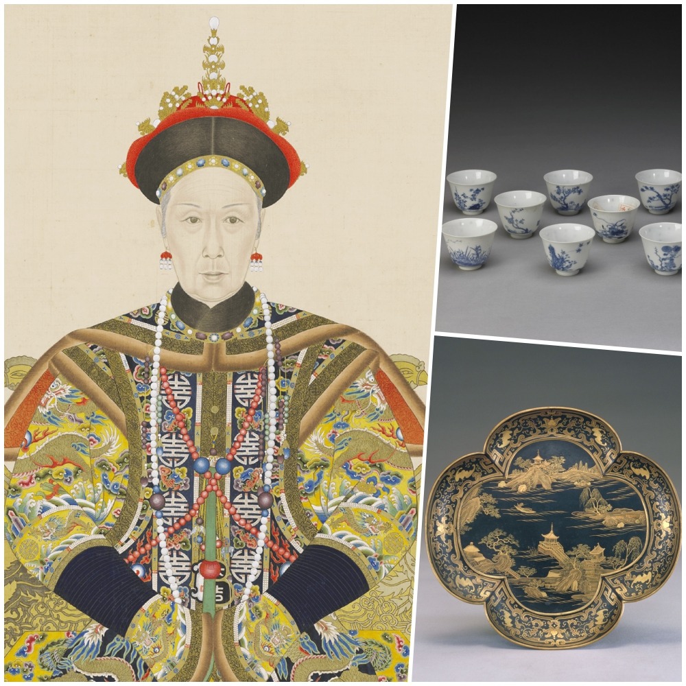 這批新展品包括書畫、服飾、陶瓷、工藝等,其中有清代傳奇人物慈鿋皇太后的肖象,以及一套12件繪上花卉圖和詩句的瓷杯,體現高超工藝的技巧。