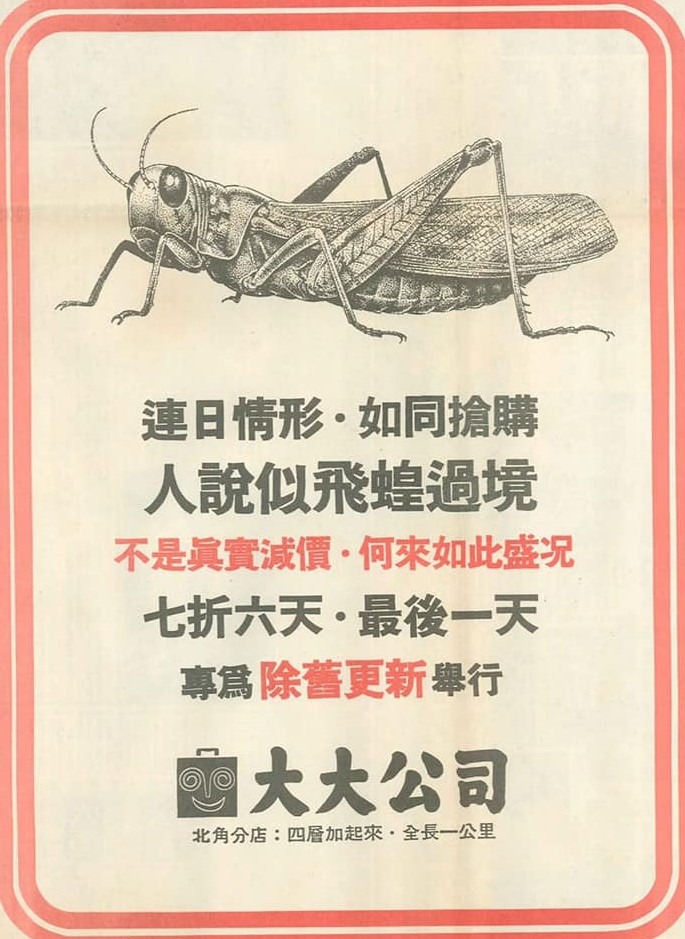 大大公司這個先聲奪人的八折優惠,也令很多百貨同業如先施、永安等跟隨實行各種購物折扣,例如逢星期五、六、日推出一些特價貨品,以及大賣電視宣傳廣告。