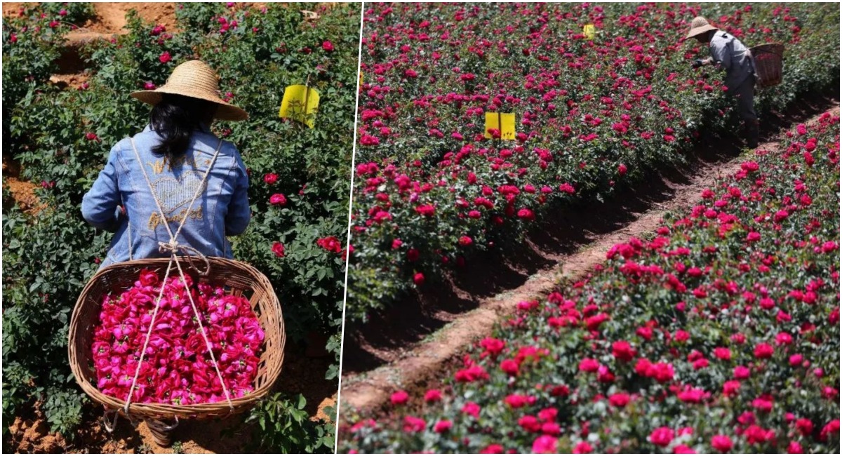 玫瑰花的食用史見於明末,當時的人們已經開始用玫瑰花來釀酒、製作花醬等。到清末時期,慢慢發展至規模生產。