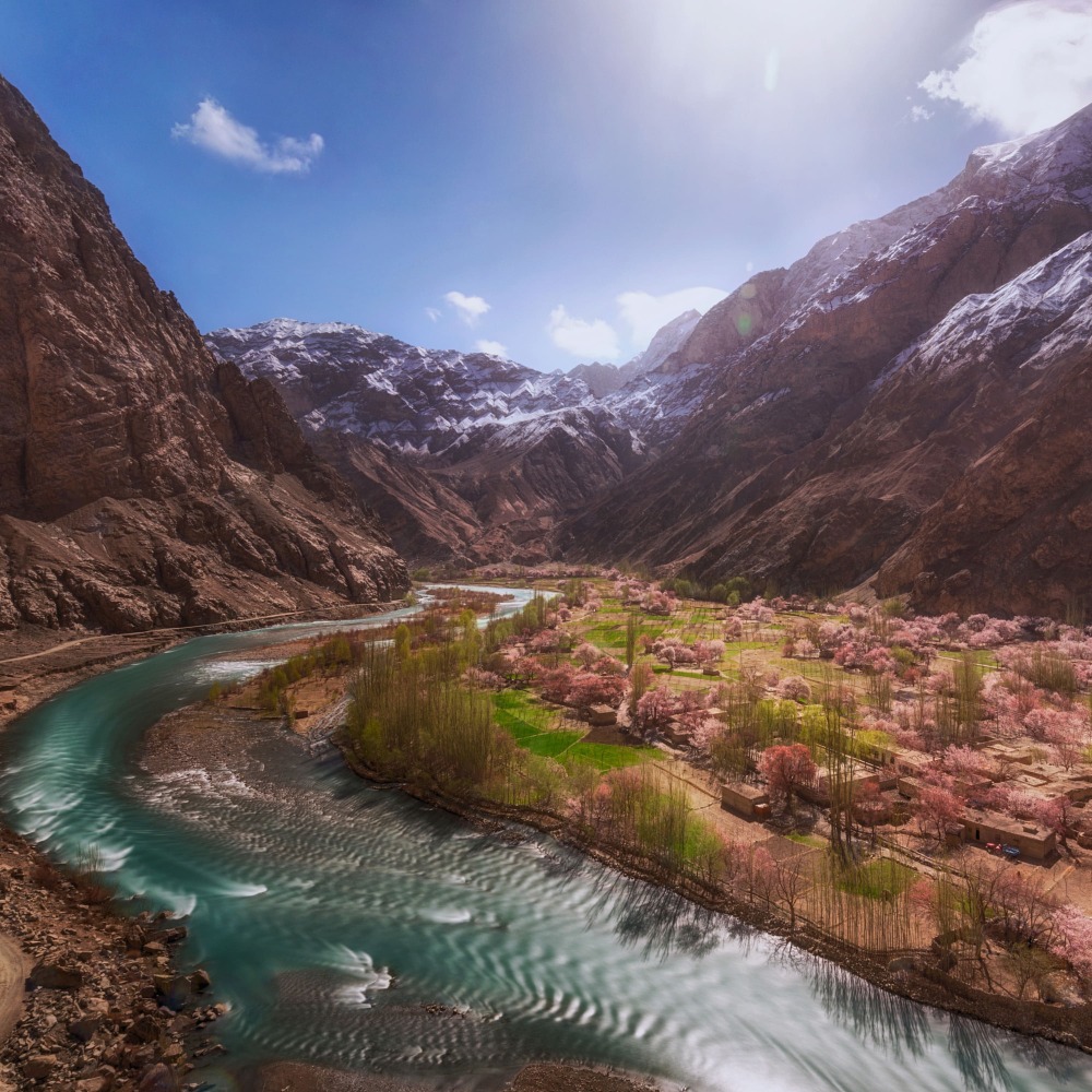 這裏的杏花分布廣泛,而且開得茂盛,從帕米爾高原的塔什庫爾干河谷地帶開始,沿着河谷穿梭,跨越山川、湖泊、草甸,一步一景,最後抵達帕米爾高原雪山下的古村落群。
