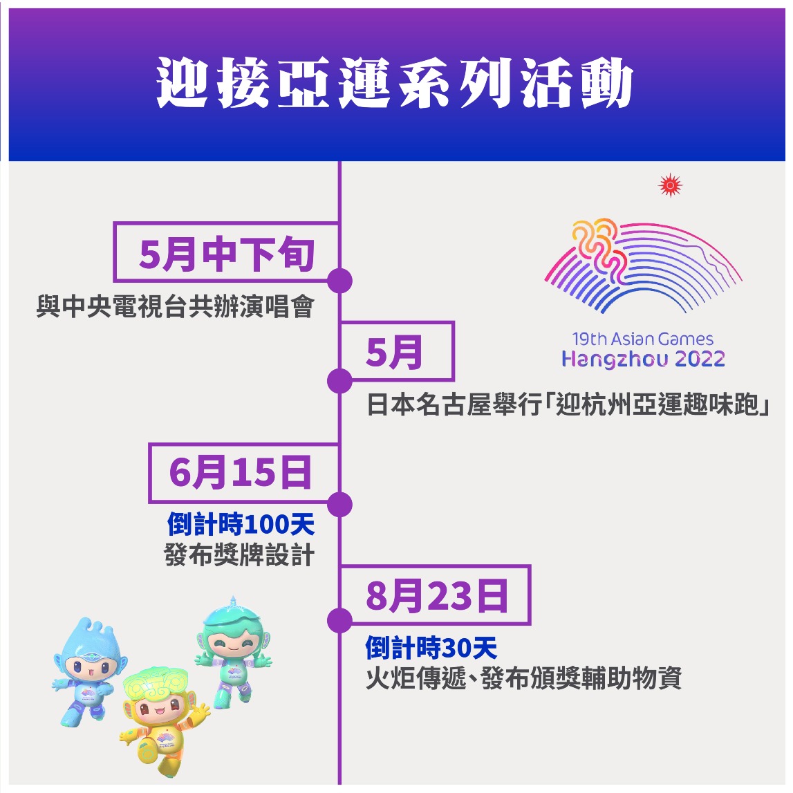 當中,5月將在日本名古屋舉行的「迎杭州亞運會趣味跑」活動,是杭州亞組委跟亞洲各奧委會合作,此前已在緬甸、新加坡、哈薩克斯坦等國舉行。