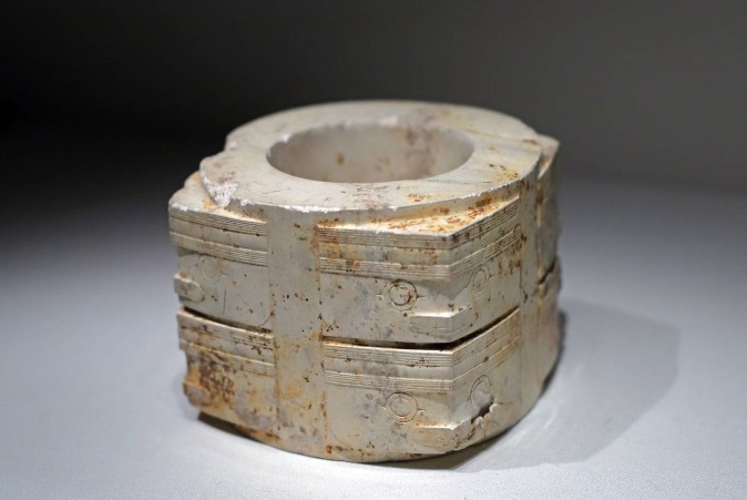 當中最引人注意的火炬頂端,是以方圓相融的玉琮(粵音:cung4)為特征。玉琮是一種內圓外方的筒型玉器,是古人用於祭祀的一種禮器。