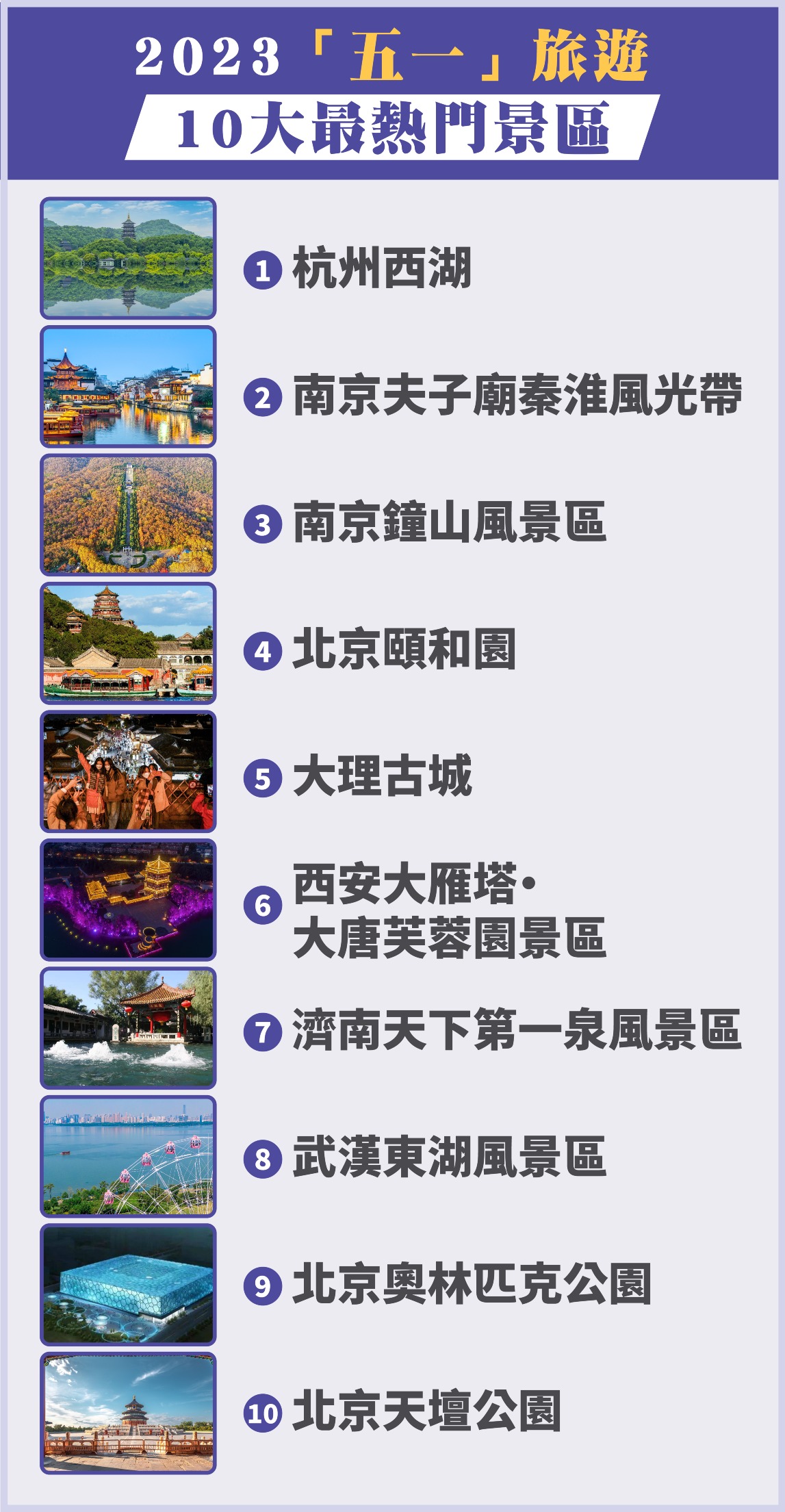 中國地大物博,北上旅遊如何選擇?2023年「五一」假期最熱門10大景區出爐。本文為你一一介紹,下次旅遊不妨從中找找靈感。