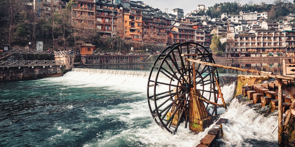 小滿過後,江南農田需要蓄水,農夫全體出動踩水車,將河水引入田地,保證莊稼茁壯生長。
