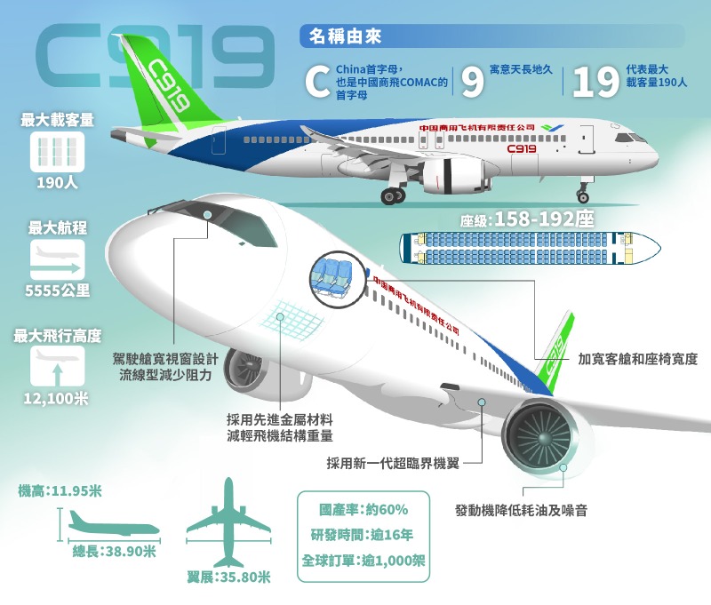 目前C919國產化率已達60%,且將繼續提高直至完全國產化,此刻最需要補足的是一顆「中國心」(國產引擎)。在這方面,中國研製中的「CJ-1000A」(長江-1000A)客機引擎已有相當進展。