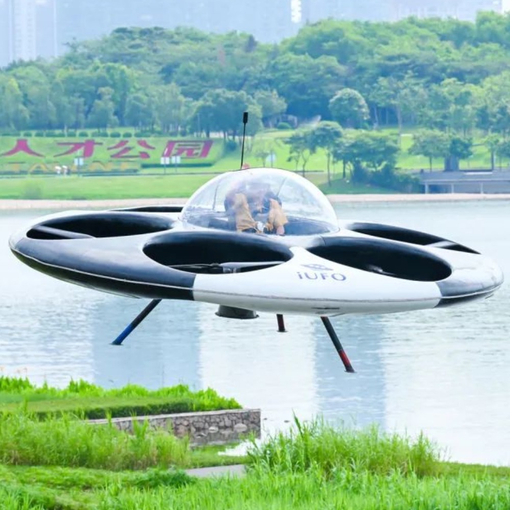 這架「飛碟」產自深圳,是一款垂直起降飛碟載人飛行器,來自深圳幽浮飛碟科技有限公司,近日在深圳人才公園舉行的低空經濟投資推介會現場進行表演。