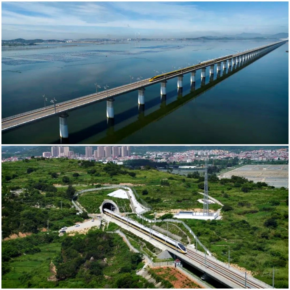 上文提及的福廈高鐵是中國首條跨海高鐵,橫跨了湄洲灣、泉州灣、安海灣三個海灣。工程人員在施工期間,克服海上大風導致的施工物資運輸困難、全年可施工時間短,安全風險高等問題,不斷研發創新,務求打造一條跨海不減速的高鐵。