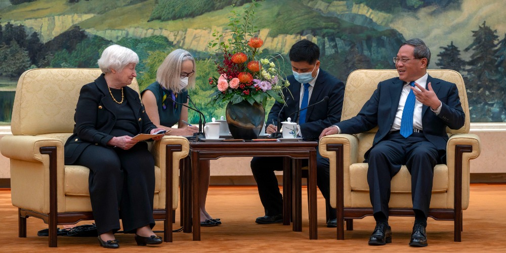 美國財政部長耶倫(Janet Yellen),自昨天(7月6日)起對中國展開訪問行程,今天(7月7日)下午與中國國務院總理李強會面。