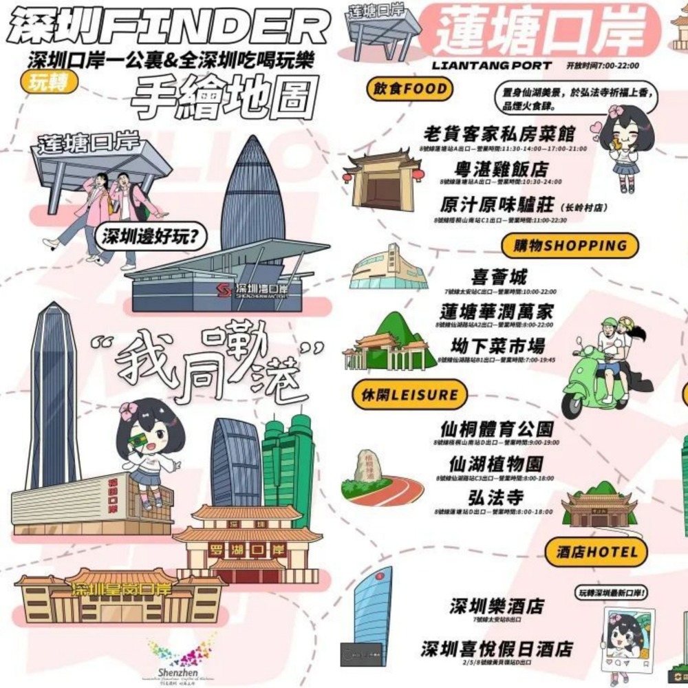 當局表示,小冊子為第一版,內容基於對香港人來深圳出遊喜好的調研,並通過手繪地圖的形式,向香港人推薦深圳遊玩好去處。