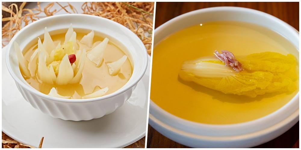 「開水」的精妙之處,在於其熬煮過程中,不放一點一滴調味料,光靠食材熬出的鮮味為白菜提味。