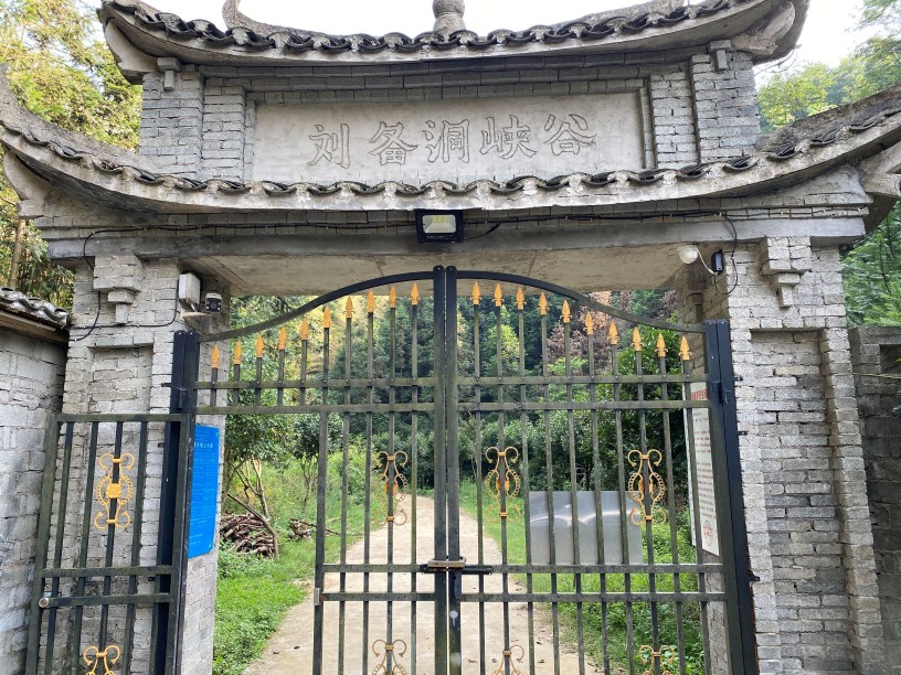 而劉備帶領關羽、張飛所部兵馬抄陸路步行,翻山越嶺。時正值5月,天氣炎熱,路經此谷,劉備見谷內險隘,林深鳥嚶,下令擇地安營,結柵扎寨,駐軍經月,劉備洞峽谷而得名。