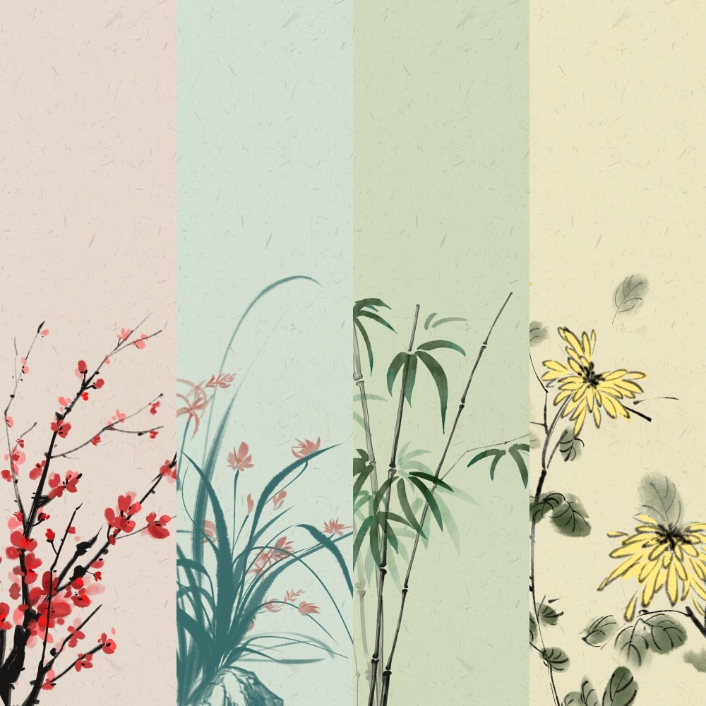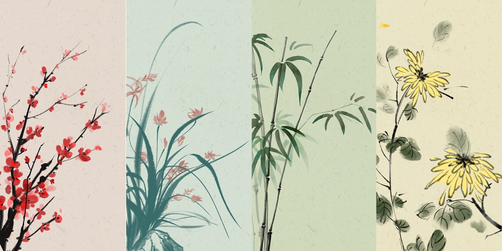 「四君子」的說法,相信起源於17世紀的明朝,當時有一位文人黃鳳池,編輯了一本木板畫集,當中有一卷是《梅竹蘭菊四譜》,此後梅蘭竹菊就被稱為「花中四君子」。