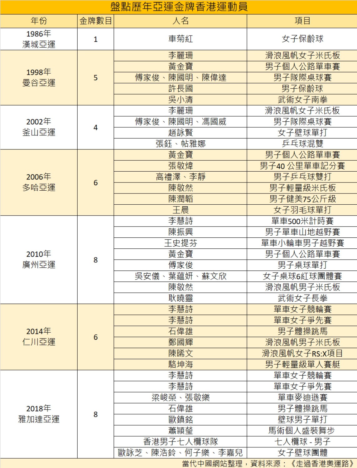 香港運動員愈戰愈勇 18屆亞運累積38面金牌
