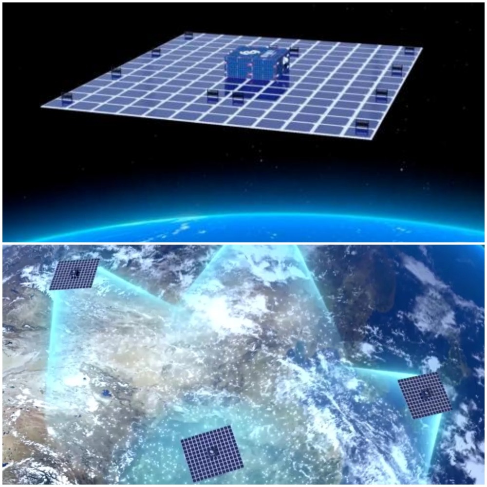 現正研製的新一代通信衛星,外形呈平面狀,表面既有用於通信的相控陣天線,又有可以把太陽能轉換成衛星能源的太陽翼,是一種相控陣天線和太陽翼一體化的通信衛星,其關鍵技術稱為「翼陣合一」。