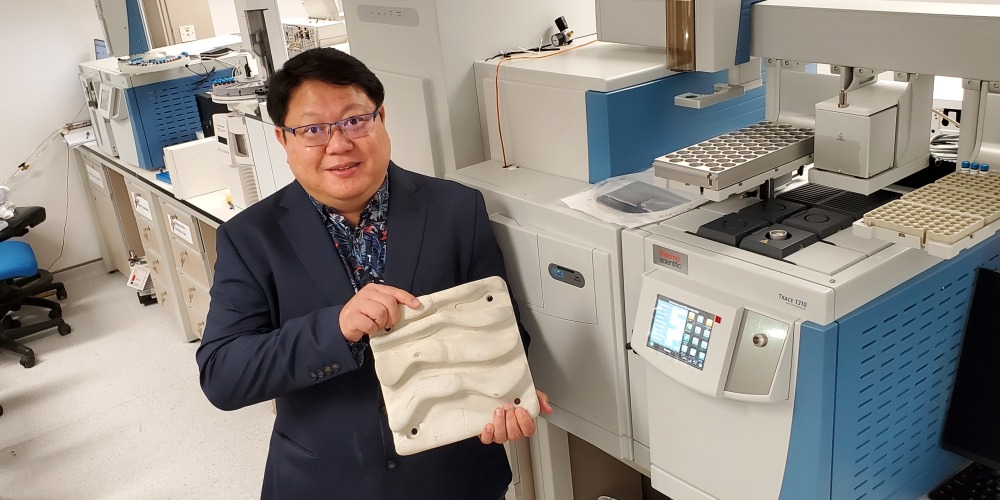 梁教授與團隊在2018年開始研發「生態磚塊」,單單是材料已經相當特別。當中有四成是由焚燒污水處理源頭產生的淤泥和海底淤泥所得到的灰燼,它的牢固程度,足以能夠用來建造海堤,即使被海浪沖擊或船度撞擊後也能保持原狀。