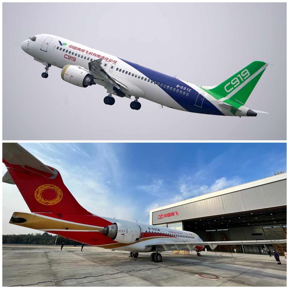 C919及ARJ21飛機均由中國商飛公司研製,兩款民航客機的成功開發是國家航空製造業的重要里程碑。
