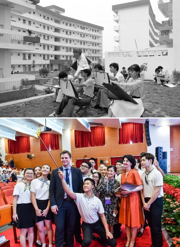 上圖:深圳大學建築系二年級學生在上建築美術課。下圖:2017年深圳北理莫斯科大學師生在開學典禮后自拍合影。(網絡圖片)
