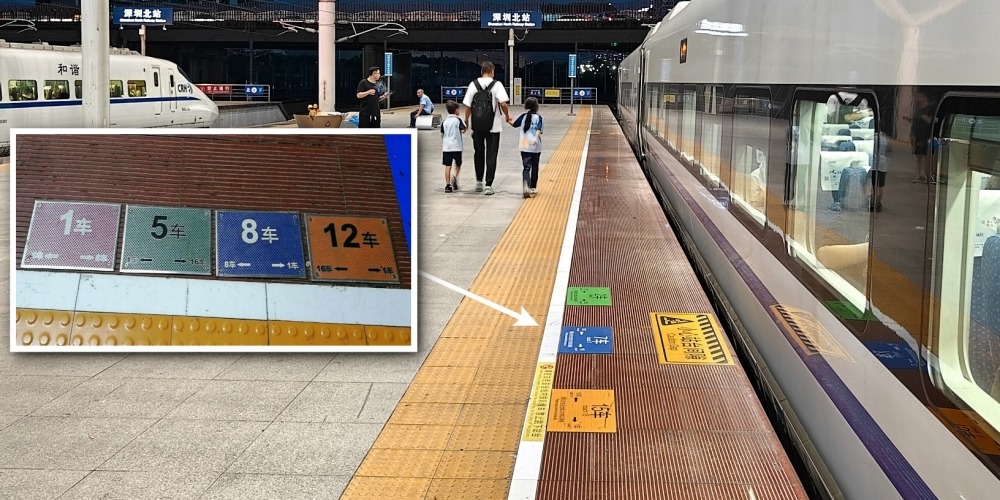 補充一點,並非所有高鐵月台都會有「彩色地標」,例如某個月台固定用作停靠8節列車,情況便會簡單得多,也不必有太多標記,香港西九龍站的月台,就沒有「彩色地標」。