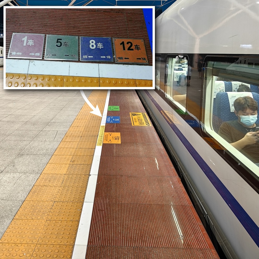 在內地乘搭高鐵列車,大家或會看到月台上有地標指示乘客候車和上車位置,但這些地標常常是幾個不同顏色的連在一起,各自標示的車廂號碼又不相同,到底以哪個為準?