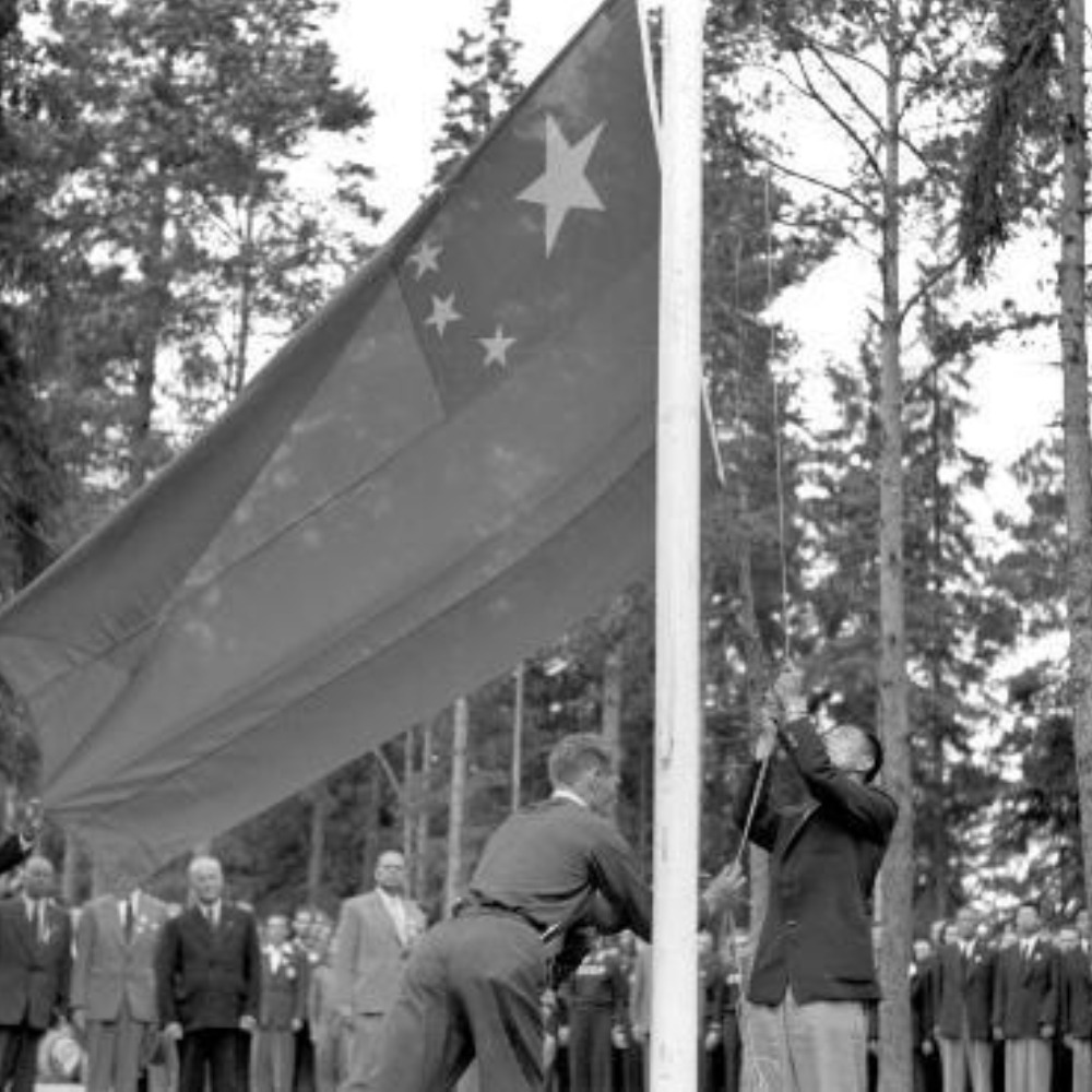 1952年7月29日,中國奧運代表團抵達赫爾辛基,五星紅旗首次在奧運村飄揚。