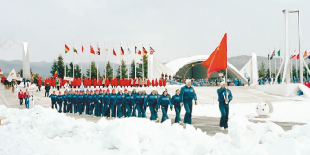 1980年2月13日第十三屆冬奧會在美國普萊西德湖舉行,來自37個國家和地區的大約1400名運動員參加了開幕式,中國運動員隨着五星紅旗昂首闊步亮相會場。