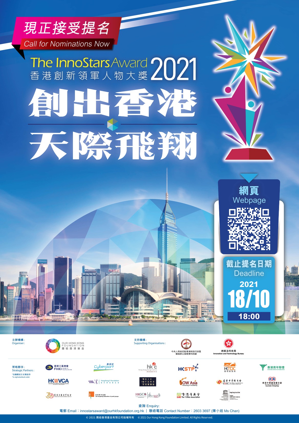 團結香港基金主辦的「香港創新領軍人物大獎」旨在嘉許在科技創新、商業模式、社會創新、或文化及創意等領域上敢於超越固有範式,突破傳統思維框框,將創新及優質的產品和服務推廣至內地及海外的創新領袖,現正接受提名。