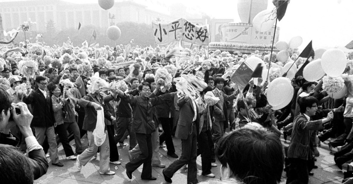 1984年國慶 學生舉「小平你好」橫額 成改革開放定格